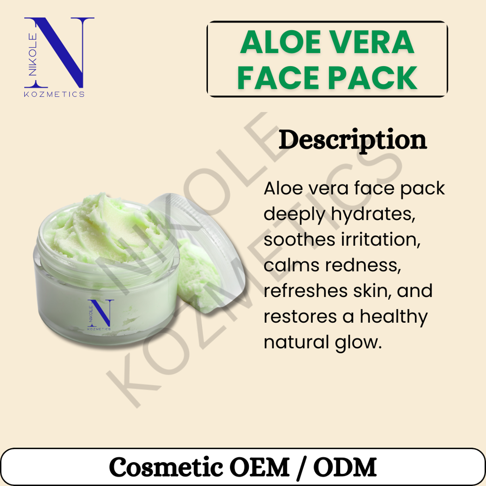 Aloe Vera Face Pack is a skincare product made primarily from aloe vera gel or extracts, often combined with other natural ingredients like turmeric, honey, neem, multani mitti (Fullers earth), or sandalwood.Aloe vera has cooling, healing, and anti-inflammatory properties.