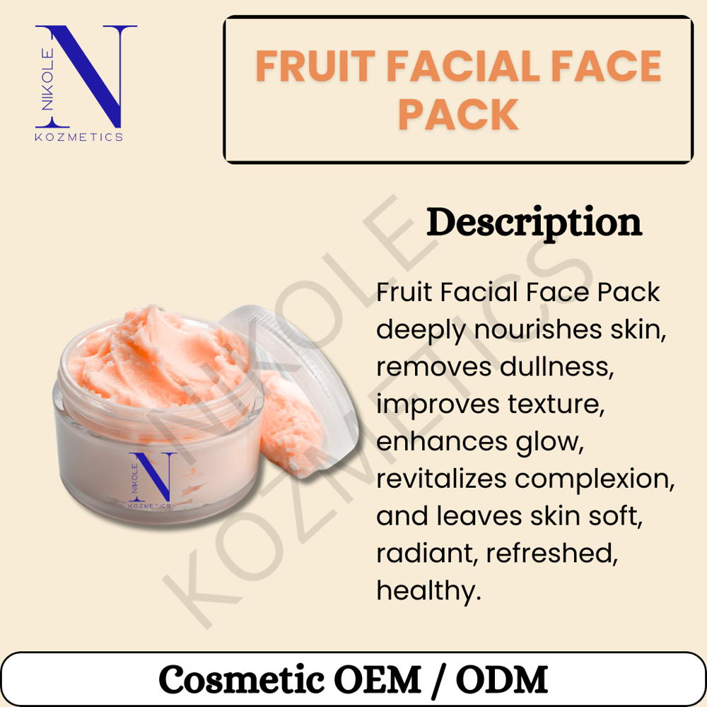Fruit Facial Face Pack is a nourishing skincare treatment enriched with natural fruit extracts, designed to revitalize and rejuvenate the skin. Packed with vitamins, antioxidants, and essential nutrients, it helps brighten the complexion and restore the skins natural glow. The gentle, nutrient-rich formula cleanses impurities, unclogs pores, and promotes a refreshed, healthy appearance